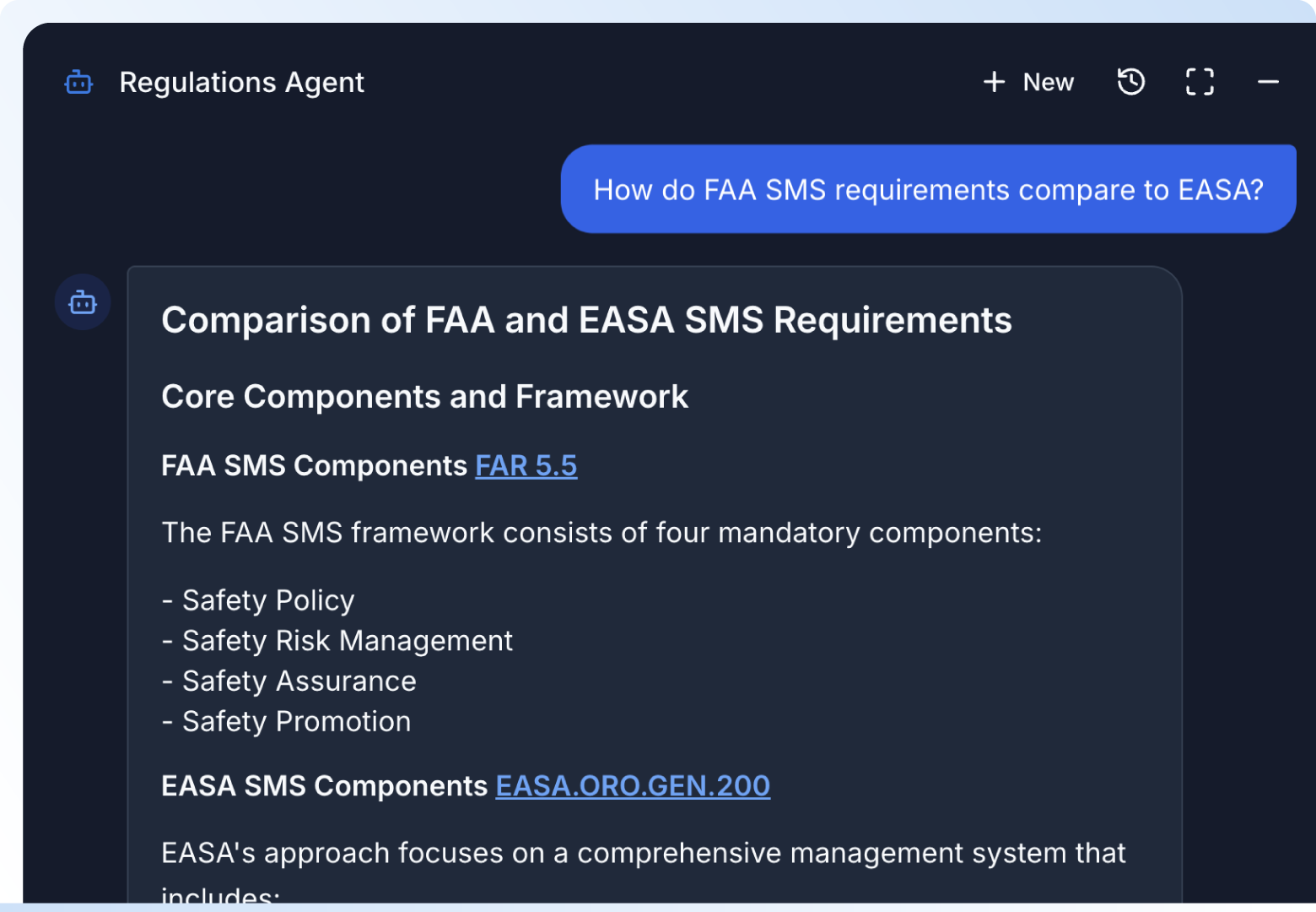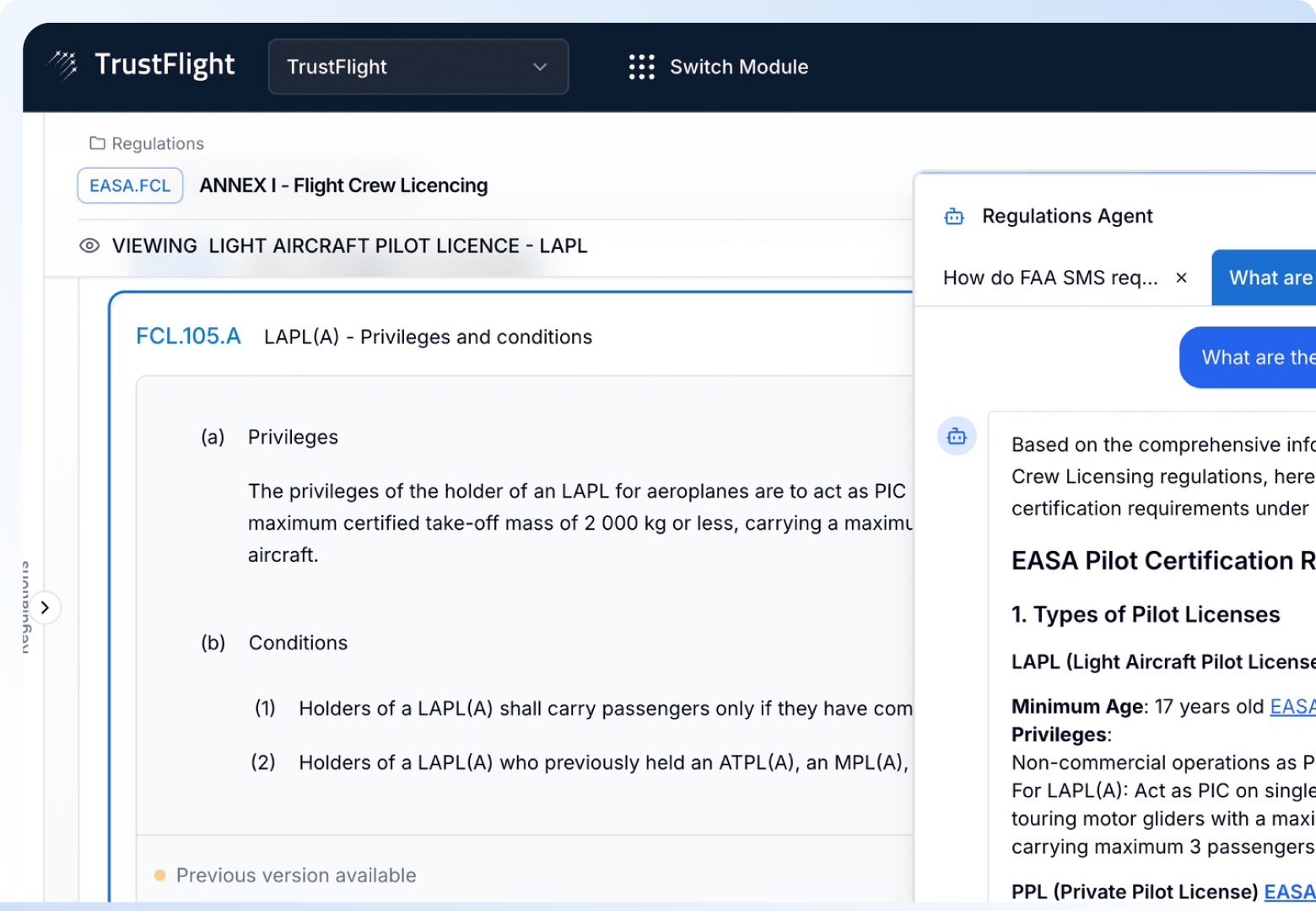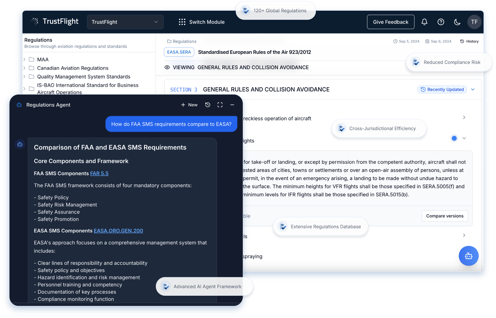 Discover how Smart Regulations combines cutting-edge AI with aviation regulatory expertise to deliver accurate, context-aware responses. All answers include direct references and citation links, ensuring transparency and verification.